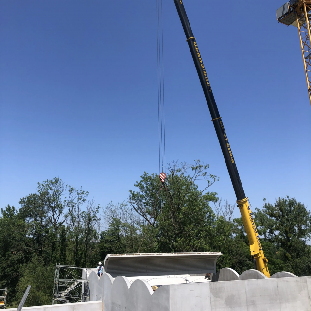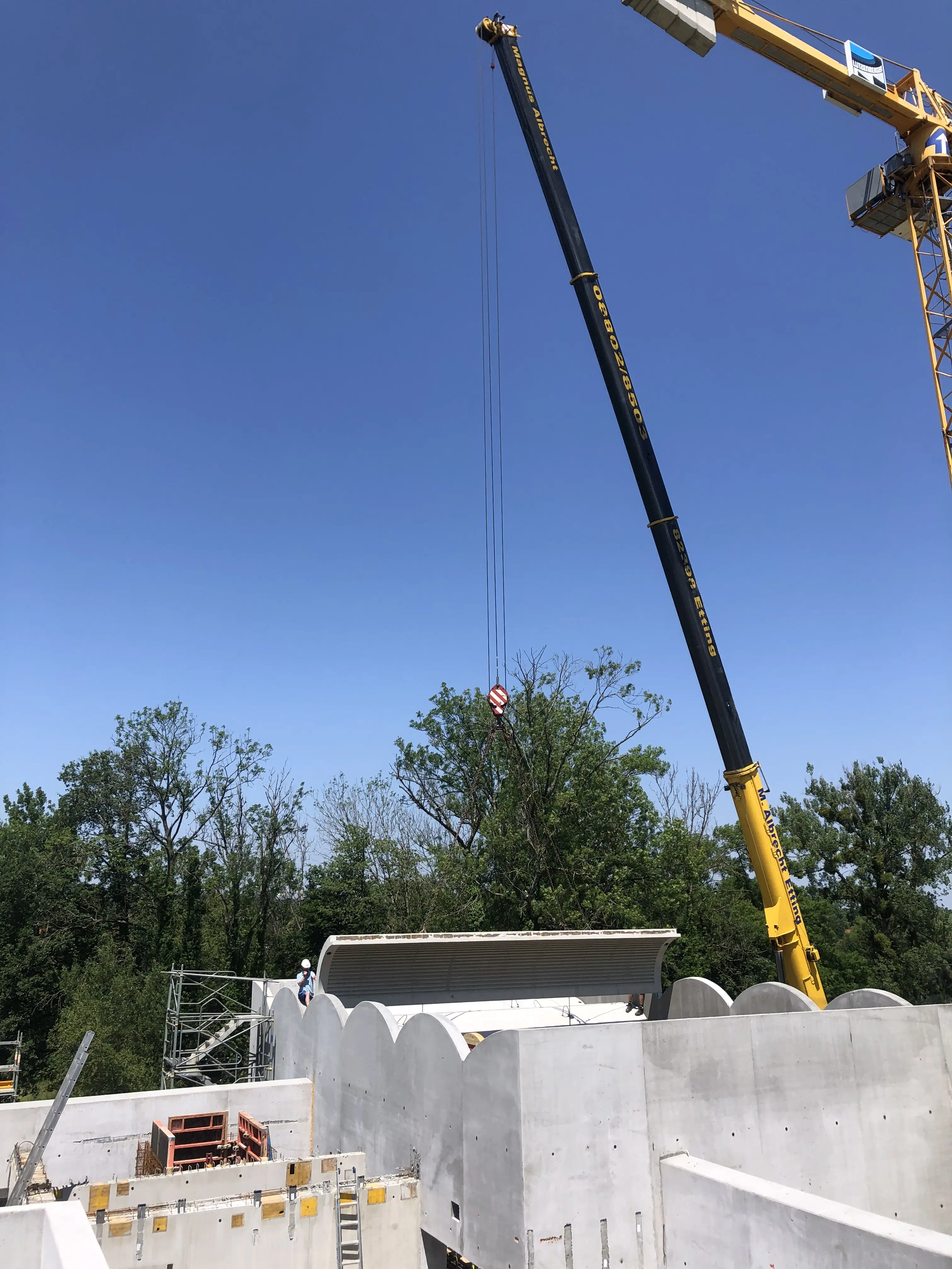 Im Juni war es endlich so weit: Der Neubau des COMU Carl Orff Museum im Ziegelstadel 1 in Dießen bekam ein neues Dach. 11 Tonnengewölbe hoben die Bauarbeiter mit zwei Krans auf den großen Ausstellungssaal.