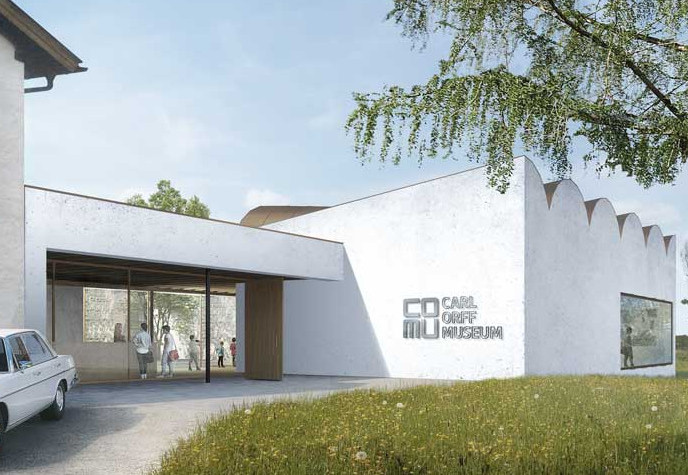 The museum dedicated to the life and work of Carl Orff opens his place of work and final residence to the public. An extension complements the listed Orff estate with a residential and work building, a pergola and a landscaped park.This extension has been designed to be unobtrusive in order to preserve the charm of the estate and enhance its effect.The high hall of the special exhibition, with its distinctive barrel vaulted roof, emphasises the address. Inside, clearly structured exhibition rooms offer a variety of views and perspectives within the building and its characteristic surroundings. The concrete ribbed construction is reminiscent of the wooden beam ceilings in the existing building and makes the rooms column-free and therefore versatile. The calm material concept in the interior is characterised by the visible concrete, which is highly thermally insulated, and oak fixtures. In addition, the climate stability of the materials reduces the amount of building services required. The circular route through the entire ensemble is barrier-free.Axel Frühauf, meck architekten